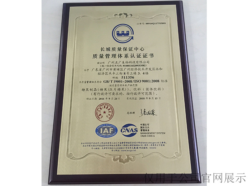 我司取得“ISO9001長(zhǎng)城質(zhì)量保證中心質(zhì)量管理體系認(rèn)證證書”;